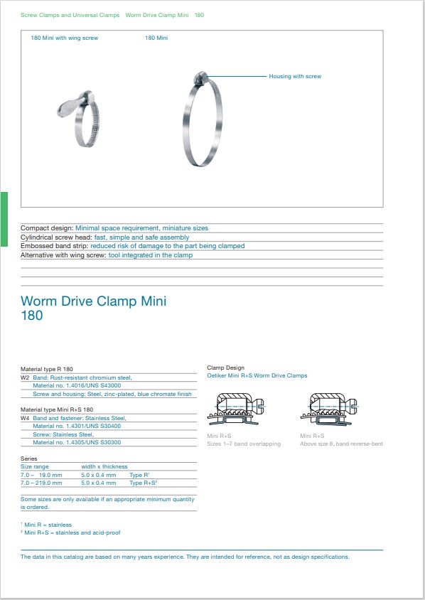 Mini šnekové spony Oetiker jsou vyrobeny z nerezové oceli 304 a jejich kompaktní design znamená minimální nároky na prostor. S šířkou 5 mm jsou tyto spony ideální pro aplikace, kde je prostor omezený. Mini šneková spona je vybavena válcovou drážkovanou hlavou šroubu, která umožňuje rychlou, jednoduchou a bezpečnou instalaci. Kromě toho má spona pásek s ražbou, který snižuje riziko poškození upínané části.