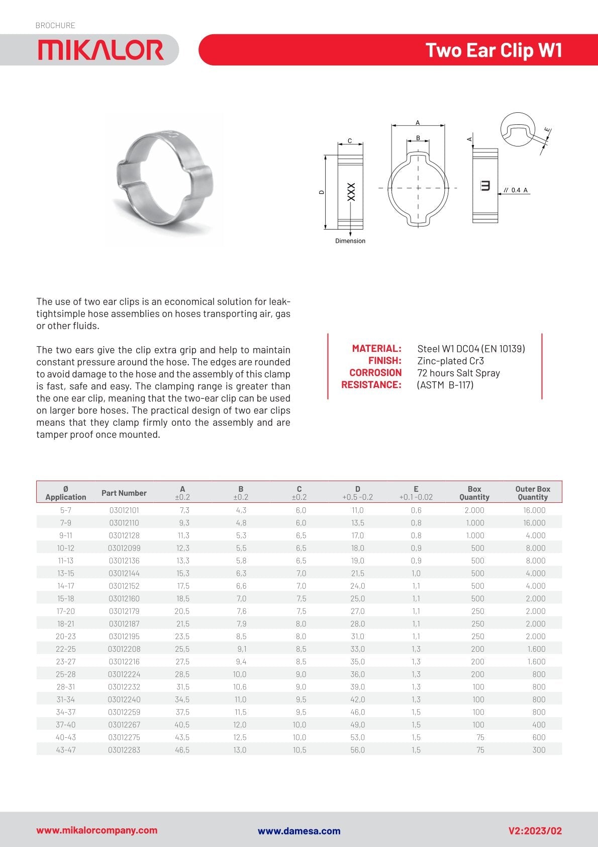 A Mikalor a W4 Ear Clip válogatásos dobozokat azzal a céllal fejlesztette ki, hogy a leggyakrabban használt méreteket rozsdamentes acélból kínálja. A strapabíró műanyag tok a termék szállításához is nagyon kényelmes, és azt jelenti, hogy mindig a leggyakrabban használt méretek állnak rendelkezésre. A betét tartalmazza az egyes átmérők elhelyezkedését a dobozban. Minden doboz tartalmaz egy fogószettet, amely a Mikalor fülkapcsok minden méretével használható mindenféle alkalmazásban.