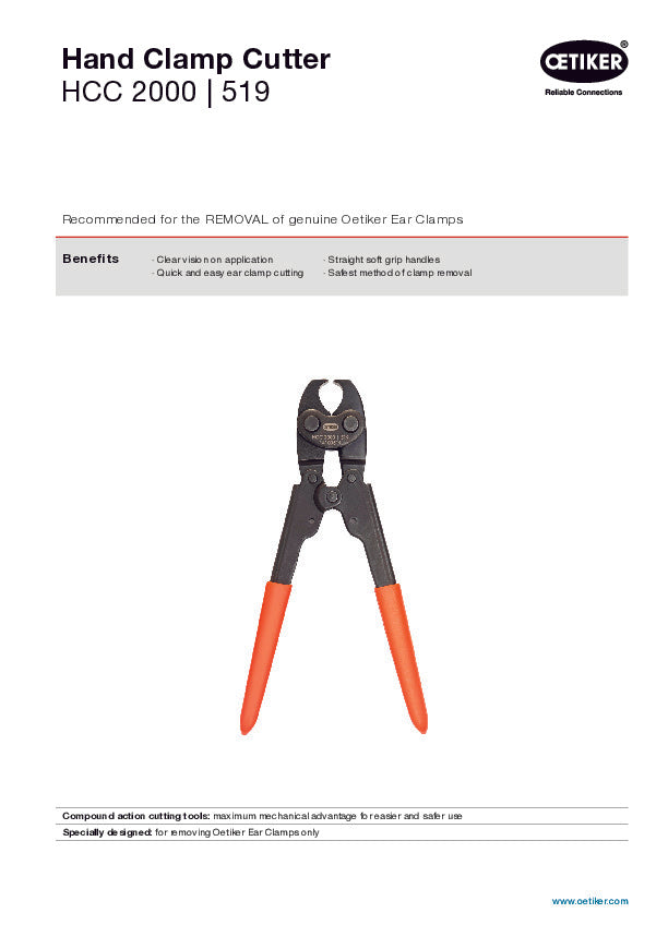 Make CV Boot & Stepless Ear Clamps repairs and modifications a breeze with the Oetiker CV Clamp/Clip Cutter, part number 519. Engineered specifically for the safe removal of CV Boot & Stepless Ear clamps, this precision tool allows you to quickly and effortlessly cut through the metal clamp band.
