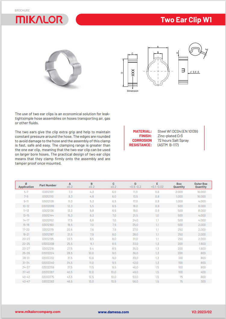 Mikalor | Dvojité svorky na hadice (uchá) | W1 oceľ | Odolné proti manipulácii